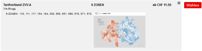 also für 17.20 Franken das Recht, die Tarifzonen 110, 111, 117, 154,