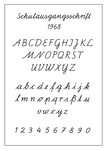 In den 1960er Jahren wurde an einer neuen "Schulausgangsschrift" gearbeitet, die dann schliesslich ab 1968 Pflicht wurde. Und sie hat sich über die politische Wende hinaus halten können: in drei ostdeutschen Bundesländern ist sie nach wie vor Pflicht, erstaunlicherweise auch im westdeutschen Saarland. In Mecklenburg-Vorpommern, Thüringen aber auch in Hamburg und Nordrhein-Westfalen ist sie als Alternative zugelassen.