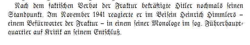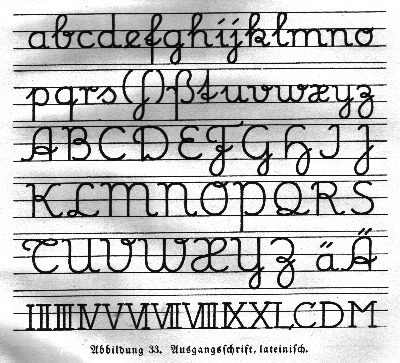 Mit Beginn der 1920er Jahre fand die Sütterlinschrift auch nach und nach Verbreitung in den anderen deutschen Ländern, die Kurrentschrift konnte sich jedoch noch bis Anfang der 1940er Jahre in Österreich halten. Im Jahre 1941 geschah dann etwas sehr eigenartiges. Die in Deutschland über Jahrhunderte hinweg verendete Frakturschrift wurde plötzlich verboten. Die Fraktur wurde offiziell als "Schwabacher Judenlettern" diskreditiert; und alles Jüdische galt es ja schliesslich auszumerzen. Der tatsächliche Grund aber dürfte gewesen sein, dass in allen anderen europäischen Sprachen das Schriftbild auf den lateinischen Buchstaben beruhte. In den durch Krieg besetzten Gebieten waren die Menschen gar nicht imstande, Fraktur- und Sütterlinschrift zu lesen.
