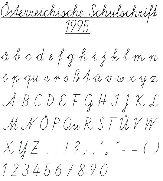 In Österreich wurde zunächst bis 1941 noch Kurrentschrift gelehrt. Dann erfolgte zwangsweise die Umstellung auf die deutsche Normalschrift. Ab 1951 wurde die Kurrentschrift zwar wieder als Zweitschrift durch das zuständige Bundesministerium zugelassen, fand aber kaum noch Beachtung. Stattdessen wurde die sogenannte "Schulschrift 1948" zur Ausgangsschrift, die schliesslich seither zweimal weiterentwickelt wurde. Sowohl die Variante 1969 als auch 1995 können an österreichischen Schulen alternativ gelehrt werden.