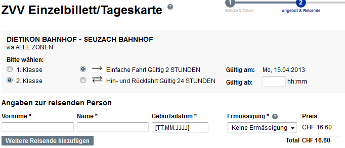 in Zürich und Umgebung Ein Witz aus der Region Basel lautet: "Was ist das Schönste in Zürich? Der nächste Schnellzug nach Basel!" Dieser Witz kann in angepasster Form auch in anderen Regionen des Landes erzählt werden. Für Basel trifft er tatsächlich auch zu: wer mit dem Zug von Zürich nach Basel fahren will und den dazu nötigen Fahrschein an einem Automaten erwerben, der kann nicht viel verkehrt machen. Es gibt für diese Fahrt, egal ob man via Frick oder Olten fährt, nur einen Tarif. Für Leute allerdings, die in Lenzburg oder Koblenz (Aargau), Frauenfeld (Thurgau), Stein am Rhein (Schaffhausen) oder Bilten (Glarus) wohnen, kann der Kauf des richtigen Fahrscheines von oder nach Zürich schonmal zum Glücksspiel bzw. zur Geduldsprobe werden mit der Folge, dass der nächste Zug ohne sie abfährt. Denn im Falle von Bilten-Zürich existieren drei Fahrwege mit entsprechend unterschiedlichen Preisen...,